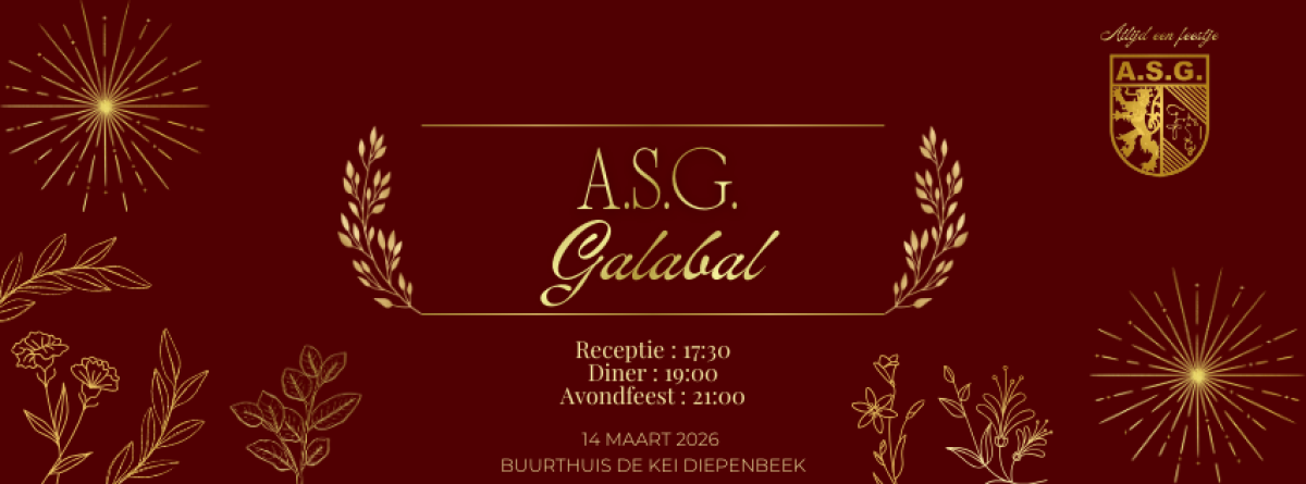 Het Galabal van A.S.G. 2026 🥂. Geniet van een stijlvol diner van de grill in goed gezelschap, gevolgd door een spetterende feestavond in volle glorie